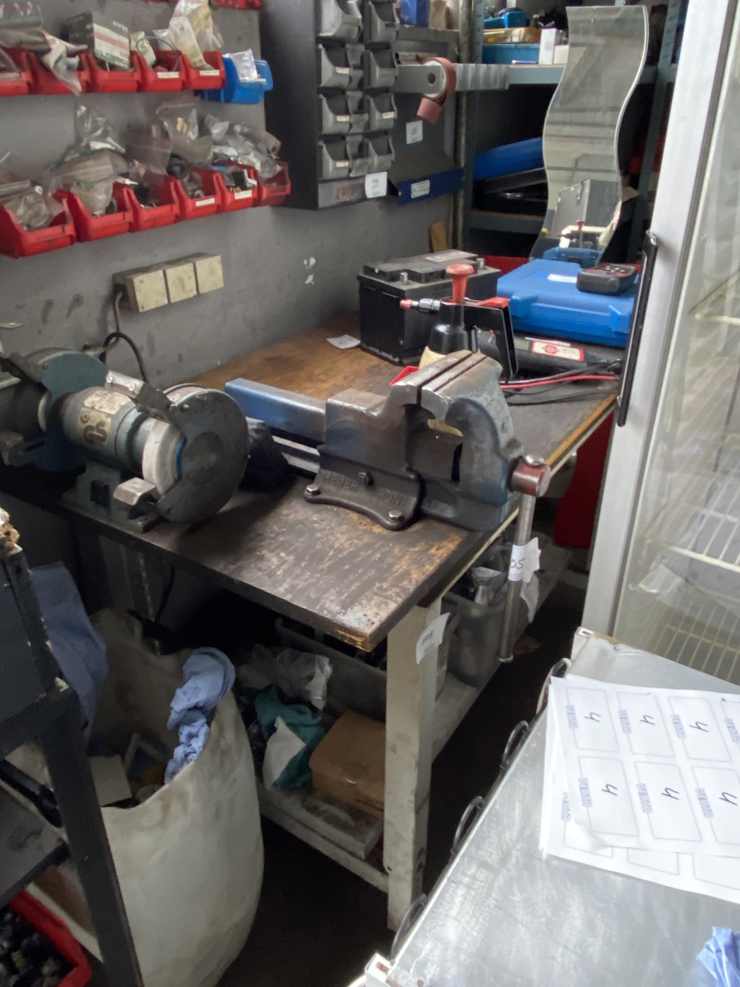 5528.105 => 1 Arbeitstisch mit Ablageboden, Schraubstock und Doppelschleifbock Elektra Beckum