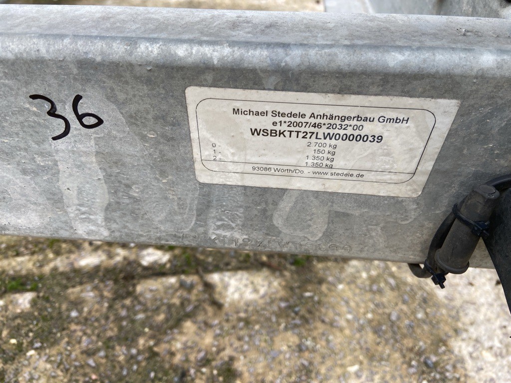 5532.83 => 1 PKW-Tandemachsanhänger Stedele mit Kabelrollenabrollgestell