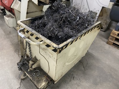 5555.54 => 1 Spänekippkübel, fahrbar mit Gabelaufnahme inkl. Inhalt (Metallspäne)