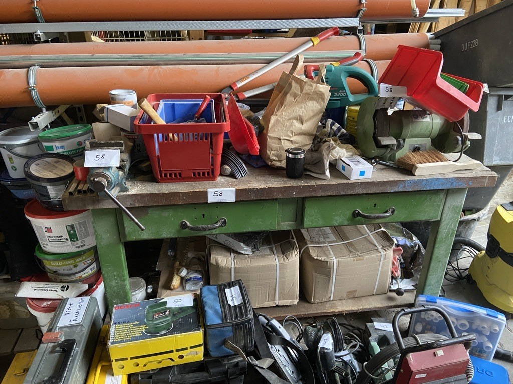 5580.58 => 1 Werkbank mit Schraubstock und Doppelschleifbock