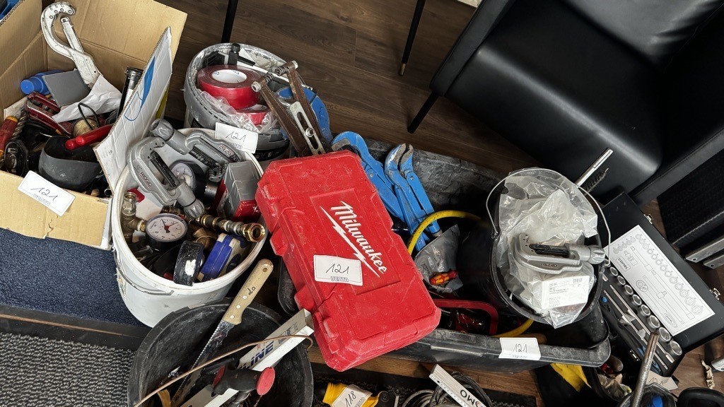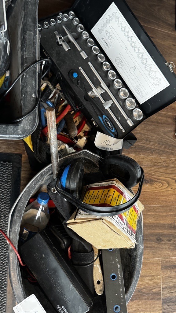 5592.121 => 1 Pos. Kleinwerkzeuge, bestehend aus: Zangen, Schraubendrehern, Wasserwaagen, etc.